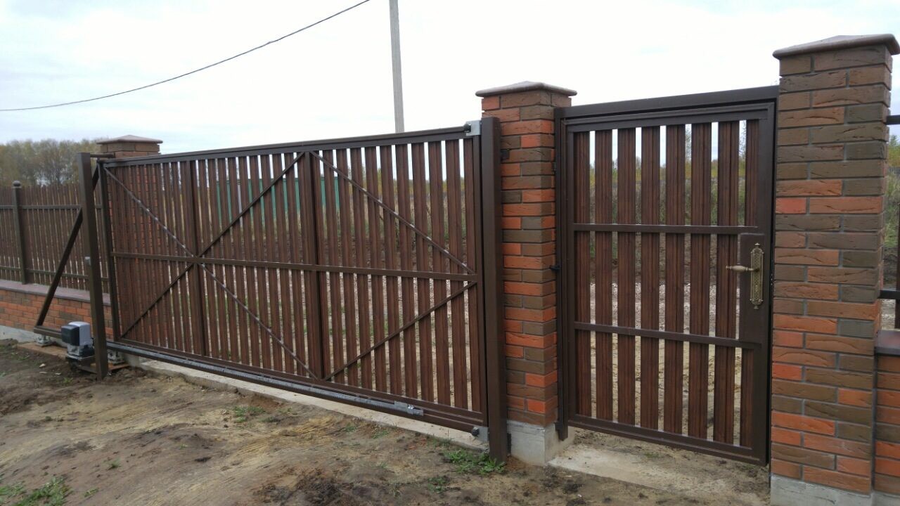 Откатные ворота из евроштакетника на винтовых сваях (цена на бетонном основании +20000р)
